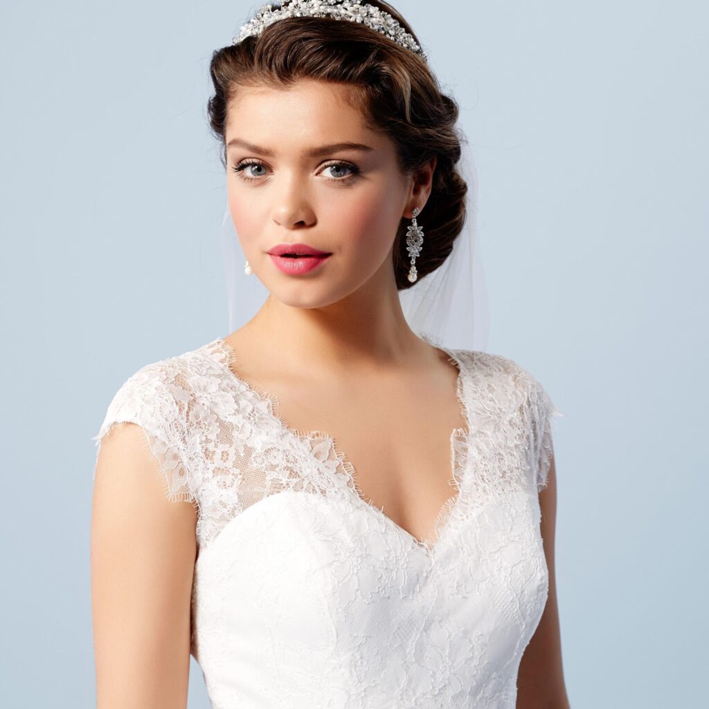 De rok heeft a- symmetrische lijnen bezet met kraaltjes.