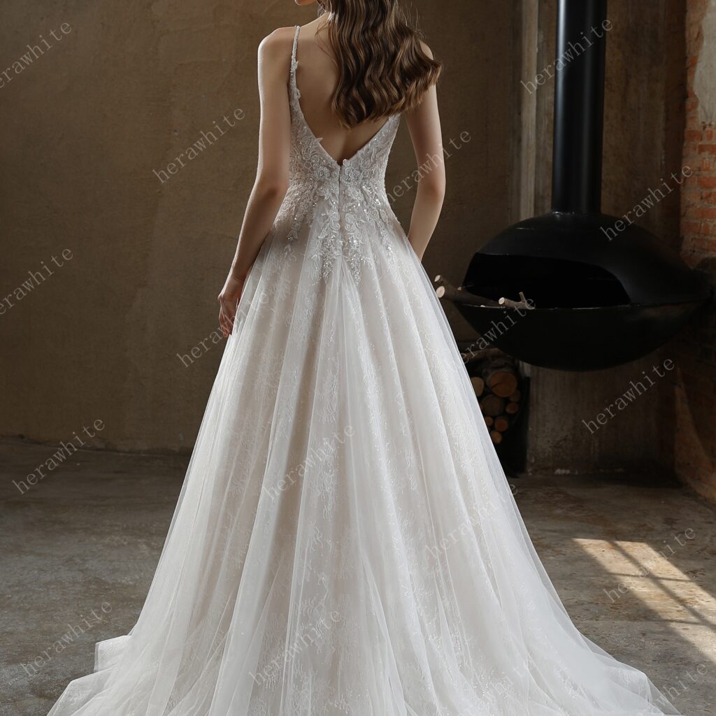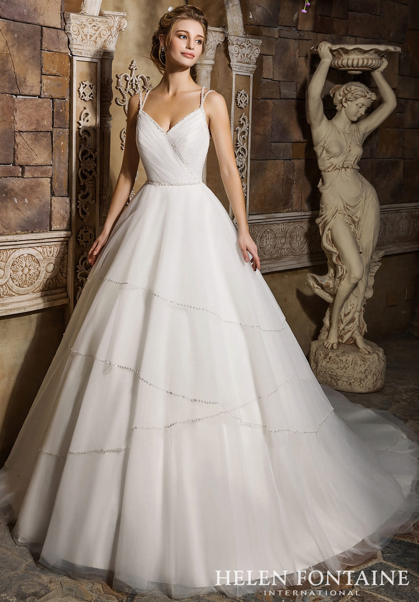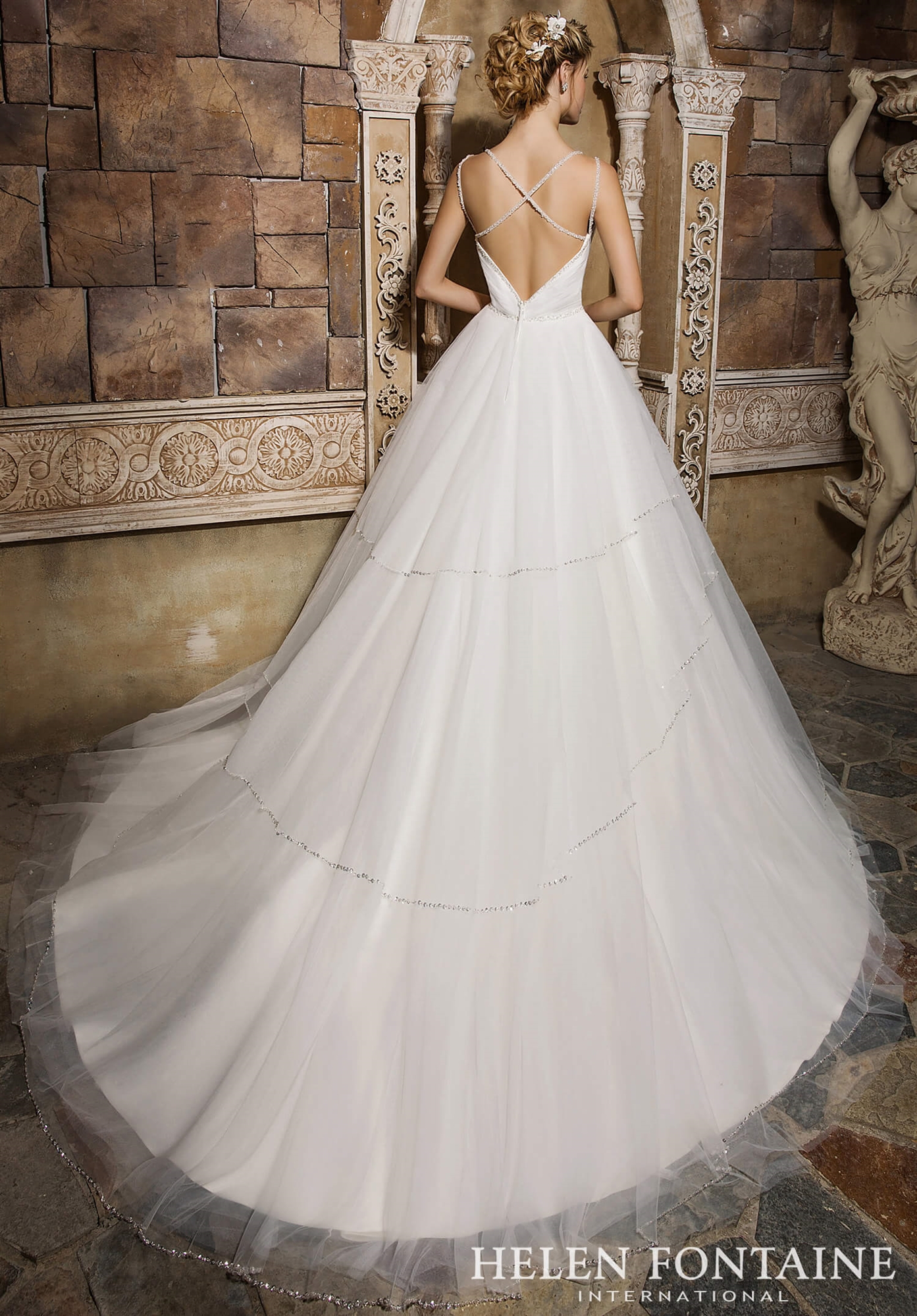 Vrolijke jurk van tule afgezet met een rand kraaltjes.