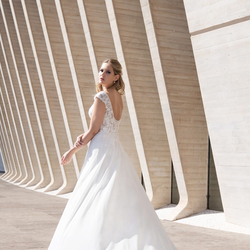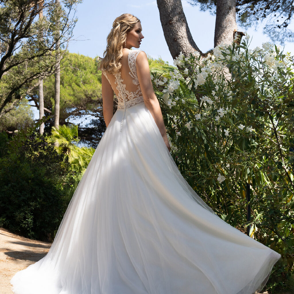 Deze jurk heeft een mooie kralenrand langs de hals en het kant is van hoge kwaliteit.