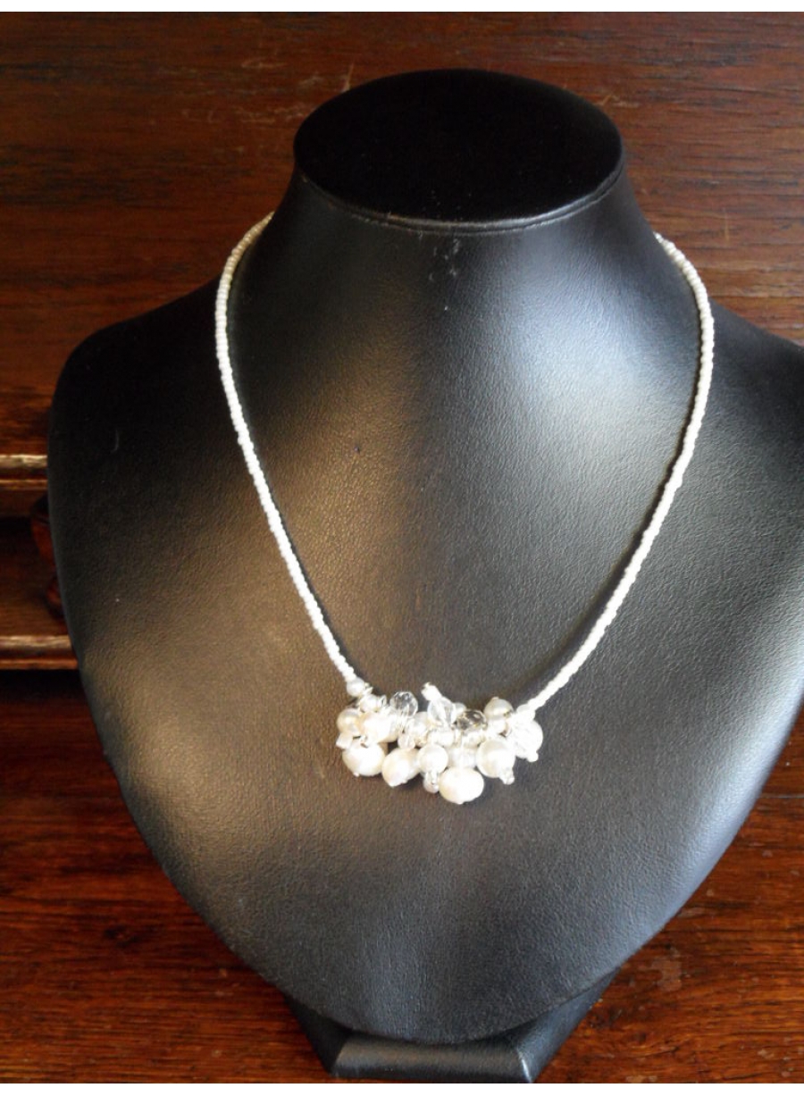 - Stijlvolle ketting van zoetwaterparels en kristallen kralen gecombineerd met glaskralen.